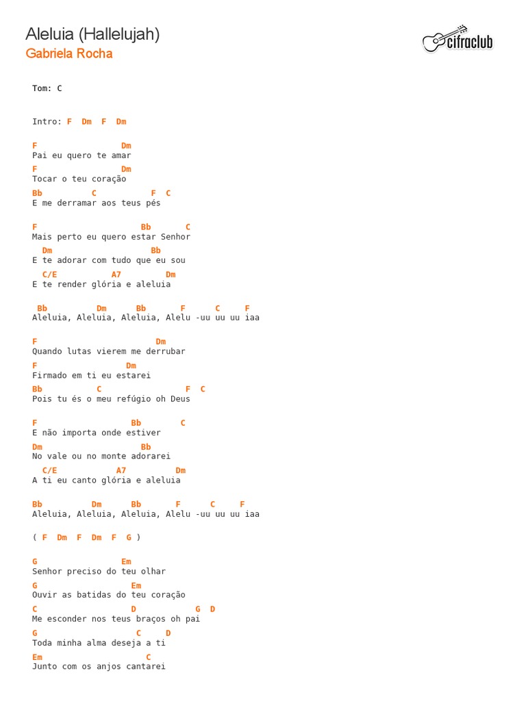 Ouça estações relacionadas a gabriela rocha no vagalume.fm. Baixar (download) pdf da partituras para violoncelo (gospel) da música aleluia (hallelujah) da cantora gospel gabriela rocha gratuito (grátis). Просмотров 1,4 млн11 месяцев назад. Quando lutas vierem me derrubar firmado em ti eu estarei pois tu és o meu refúgio óh deus e não importa onde estiver no vale ou no monte, adorarei a ti eu canto glória e aleluia. F bb c e não importa onde estiver dm bb no vale ou no monte adorarei c am dm a ti eu canto glória e aleluia.